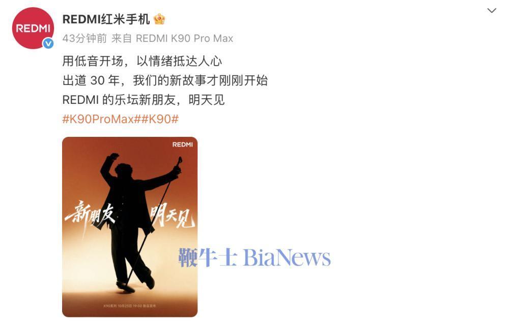 官方透露,“用低音开场,以情绪抵达人心,出道30年,我们的新故事才刚刚开始,REDMI的乐坛新朋友,明天见。”